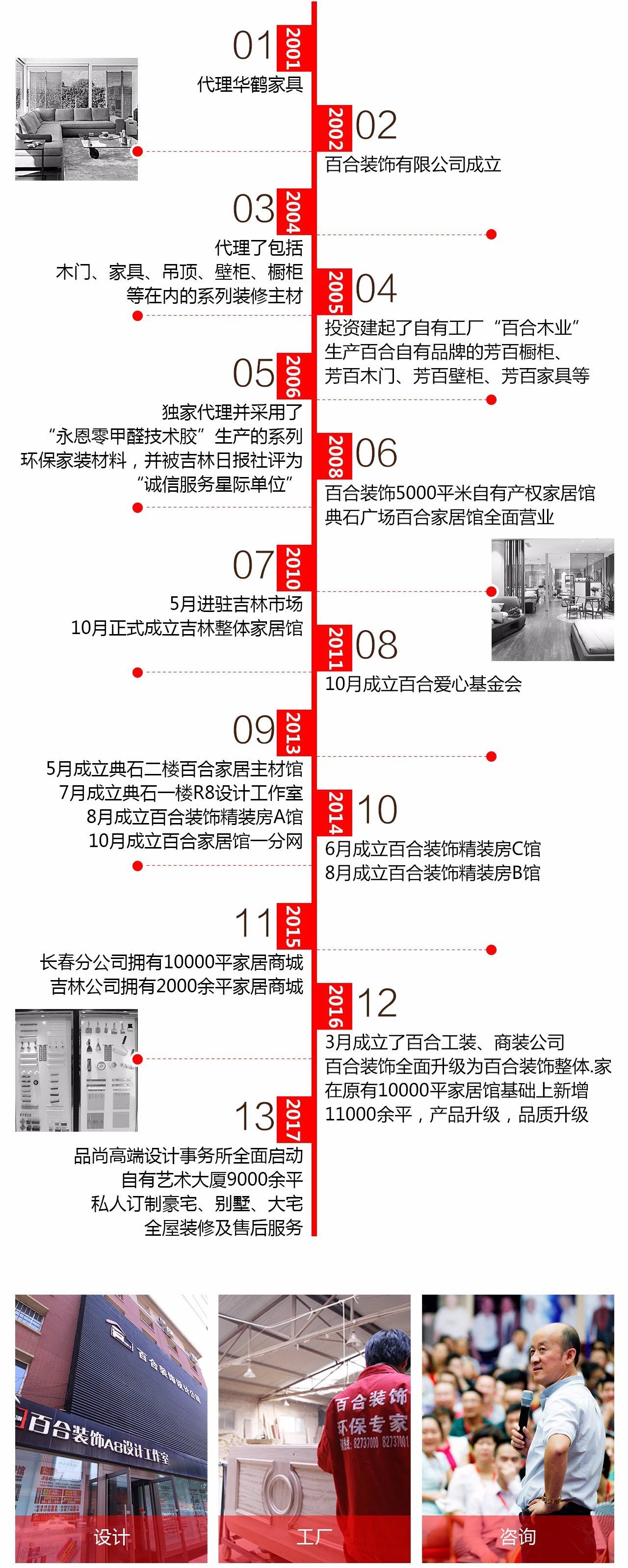 2000年,緣起家具代理,進而挺進裝修行業,重設計、抓工程,秉承誠信做人、善美做事的宗旨,風雨前行25年,現已擁有自主生產工廠、20000余平的家居展館、100余人優秀設計師團隊、吉林及長春主打賣場,同時更形成了慧百咨詢、百合裝飾、芳百自主工廠、慧百影視四大產業格局。相比最初,或許您看到的是我質的變化,但仍有更大的空間需要我去成長,所有朋友,請繼續見證!百合裝飾以永遠保持開拓進取的精神,不滿足現狀,敢于自我超越,敢于領先同行,只有秉承這樣的生存哲學,公司才能立于不敗之地!奉獻于顧客的事業、奉獻于員工的成長、奉獻于社會的發展!以人為本,才能謀求客戶、員工、企業、社會的共同成功!